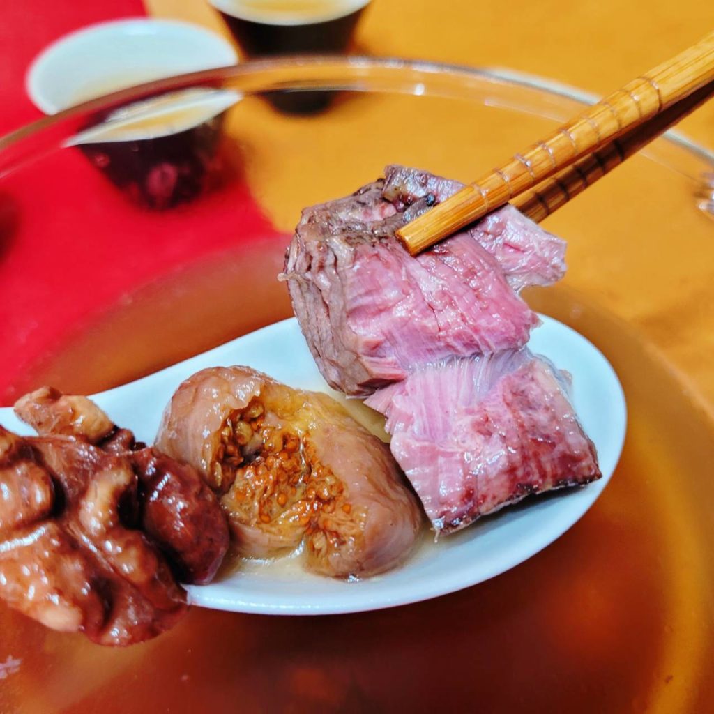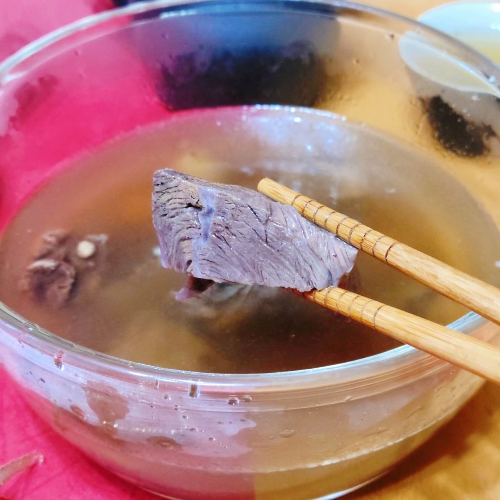 由於混董創食的湯品都是煨煮而成,所以湯頭吸取了配料的所有精華,而牛腱又吸收了滿滿食材精華的湯頭,口感相當豐富多層次,還看到牛腱的膠質呢!