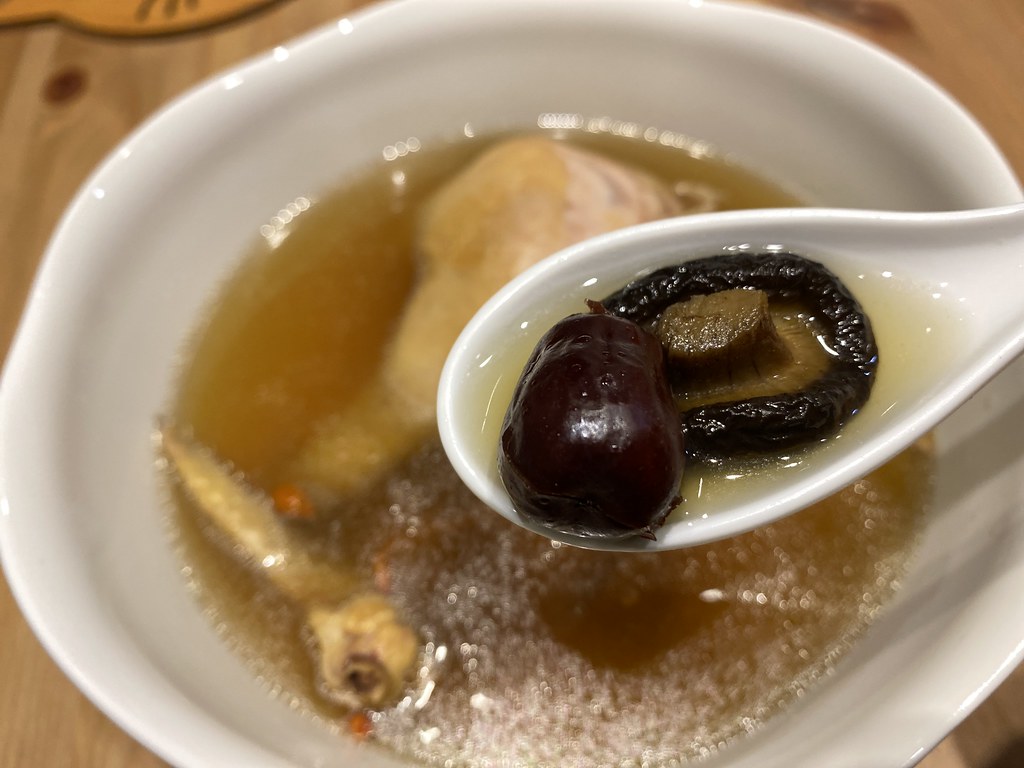 香菇、紅棗、當歸枸杞、雞腿等新鮮食材慢燉,加了香菇枸杞讓雞湯聞起來味道很香,湯頭喝起來更是香甜溫順~