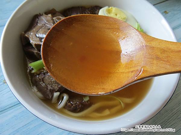 老師傅手工日曬的麵條果然香Q可口,即使泡在湯裡許久,也不軟爛,