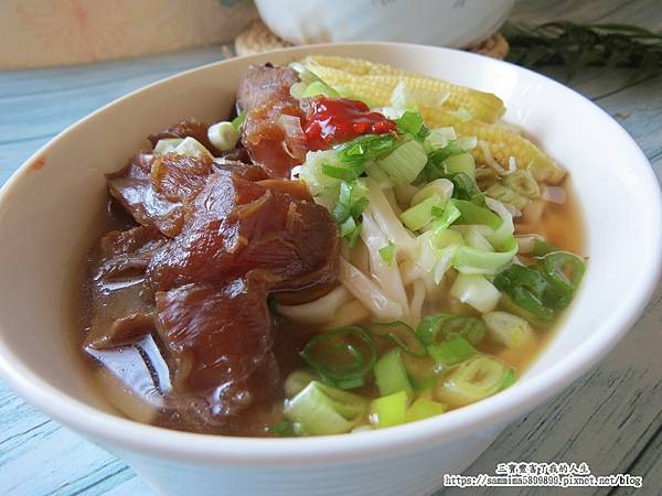新鮮牛腱切成片狀,燉至肉質軟嫩,吸附了湯汁的鮮美,入口即化開,