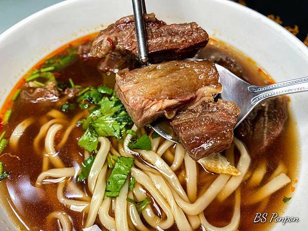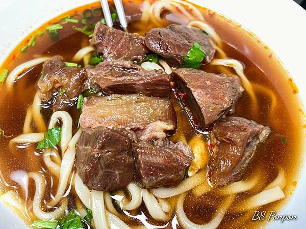 而牛肉份量是另一個賣點,精算這碗共9大塊牛花腱肉