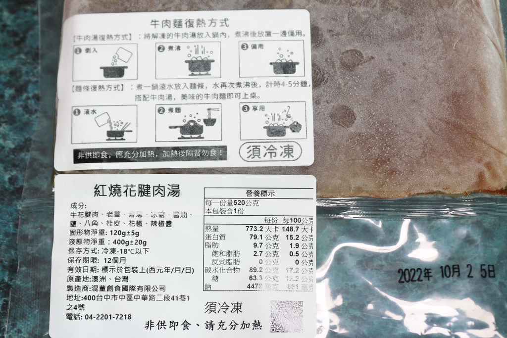 牛肉湯背面也有詳細的成分、保存期限、營養標示.......等,