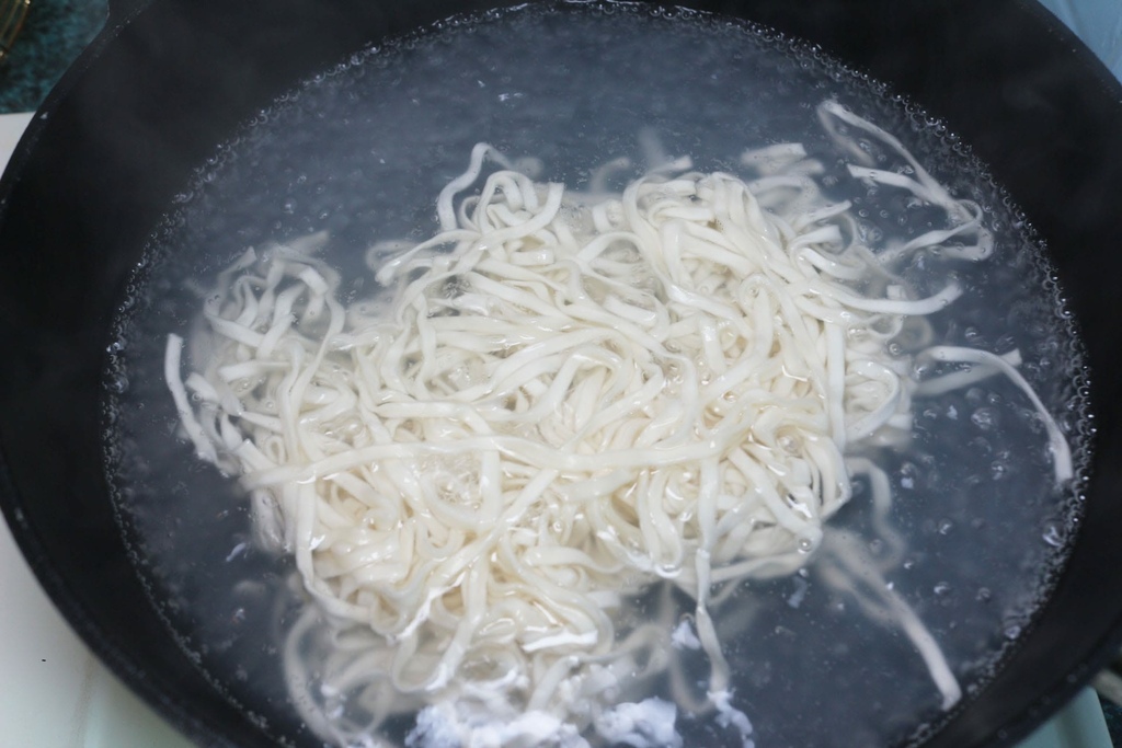 麵條部分就像一般煮麵方式煮滾即可,接著再將煮滾的牛肉湯頭加入,
