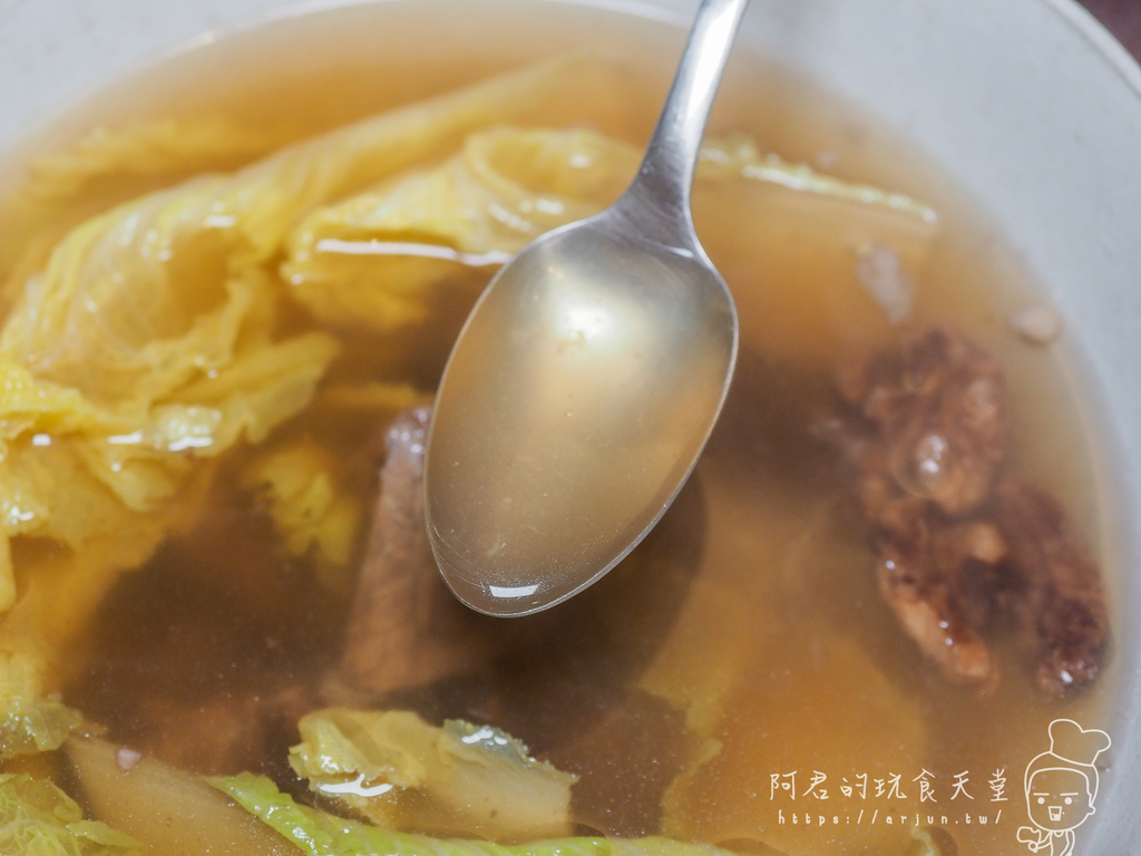 新鮮的牛腱川燙過後,就在湯裡熬煮,肉吃起來很嫩,但筷子夾並不容易散也不會爛,燉的功夫很了得呢!